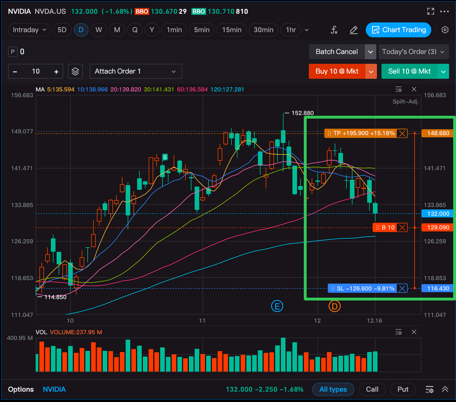 (2) After placing the order, you can directly view the take-profit and stop-loss orders associated with the current order on the chart and support direct drag-and-drop modifications.